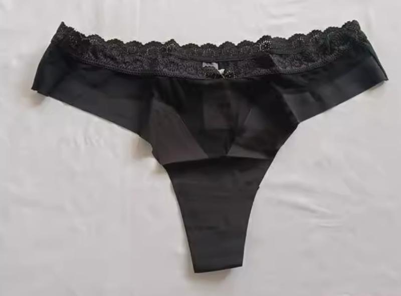 Гладкі трусики-стрінги з мереживом і прозорою вставкою onita de mas чорні xl