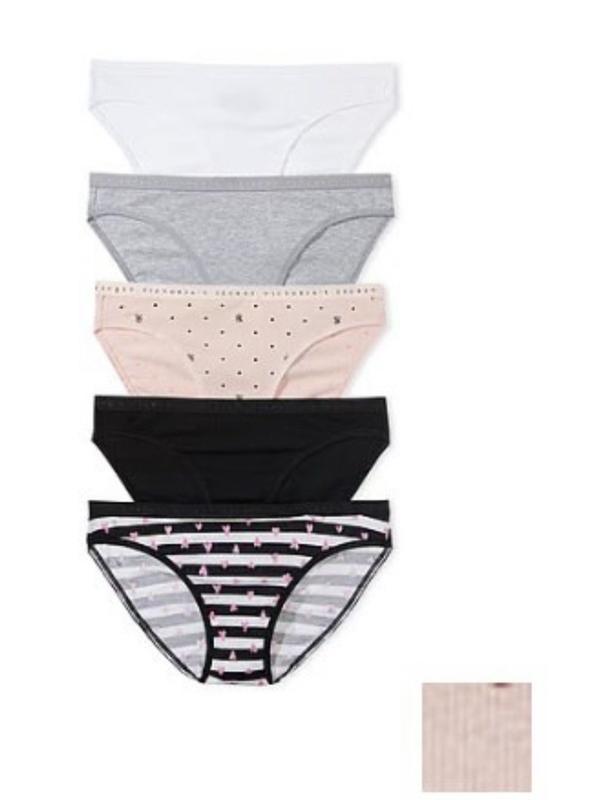 Набір трусиків Victoria's Secret 5-Pack Cotton Stretch Bikini Panties Mix , м'який,зручний.Ці трусики класичного крою із майже непомітним зовнішнім швом. 5 трусиків в упаковці Середня посадка, Еластичний пояс з логотипом.