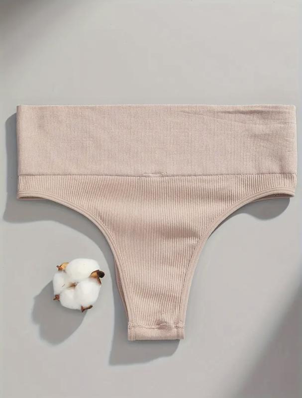 Зручні однотонні трусики танга Колір бежевий Добре тягнуться В рубчик Висока посадка, підтягують животик Розмір L (талія: 75-81 см, стегна: 100-110 см)