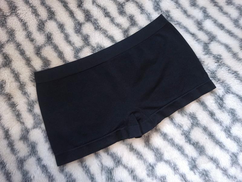 Безшовні жіночі трусики шортики Soft Basics Колір - чорний. Розмір L Заміри: ширина по резинці в спокійному стані - 33 см, тягнеться до 50 см; напівобхват стегон в спокійному стані - 37,5 см; висота посадки - 18,5см Склад: 90% поліамід 10% еластан Сток. Нові, без паперової етикетки.