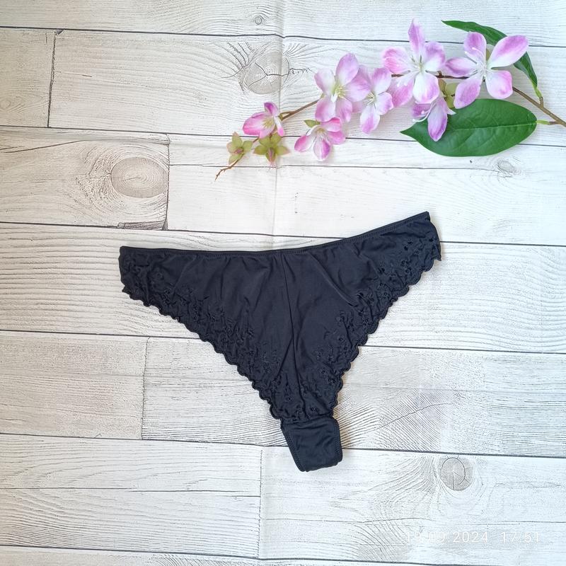 гладкие высокие стринги с вышивкой. Перед широкий. бирка отрезана. на размер XL. Пояс 37 см, тянется до 54 см, высота 25 см.