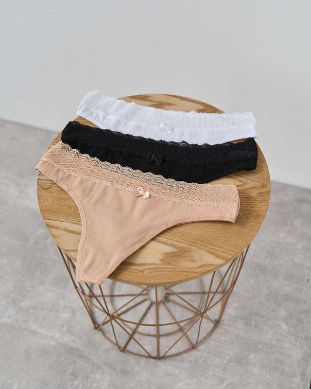 Однотонні стрінги з мереживом по талії – базові кольори 5 шт