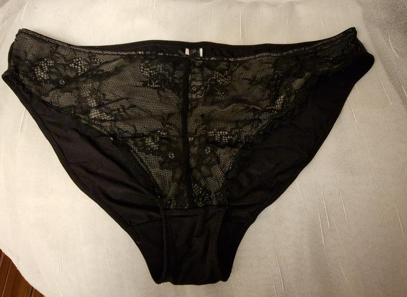 Приятные трусики немецкого бренда нижнего белья Mariemeili, с кружевом. Качество безупречно. Гарно тягнуться. Размер ХL. Замеры: ПО верху 40 см., (тянутся до 47 см.) сторона 7 см., высота сзади 26 см.