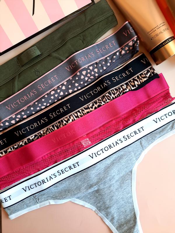 Бавовняні трусики стрінги з лого резинкою вікторія сікрет victoria's secret