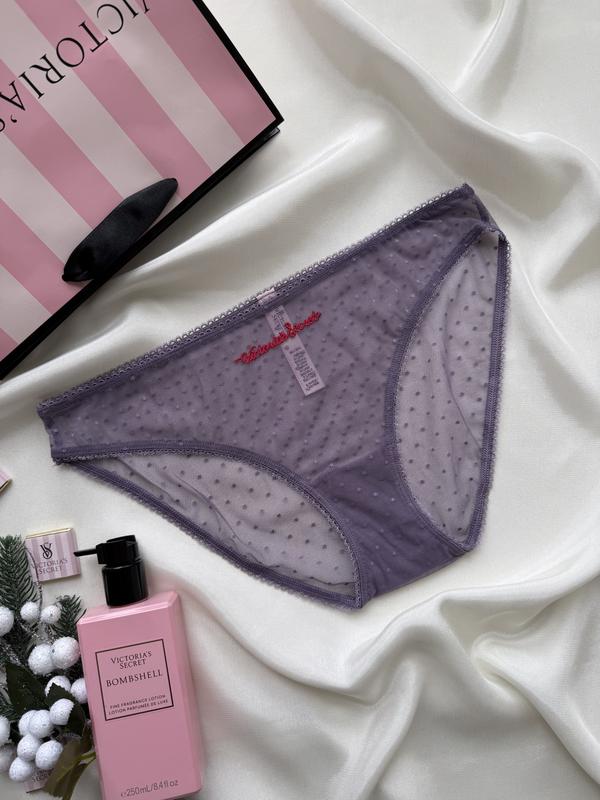Трусики victoria’s secret оригінал труси сітка прозорі бузкові сірі