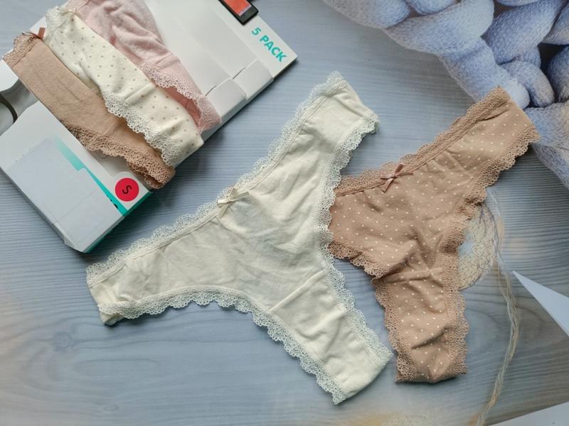 Комплект коттонових трусиків стрінгів з мереживом від sinsay, pp s.