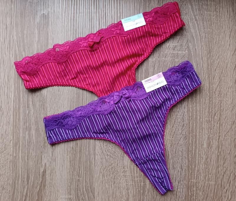 Набір трусиків. Трусики стрінги, в наборі двоє трусиків, колір на вибір, є фіолетовий та червоний. Ціна за набір 95 грн. Розмір 5-6-7, заміри на фото, по необхідності надам додаткові.