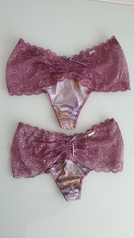 Нові, але без паперової бірки, трусики з мереживом. Склад:54% поліестер, 36% поліамід і 10% еластан. Розмір XS і S, заміри див. на фото 8, 9. Ціна вказана за пару. Пересилка по передплаті або безпечна оплата