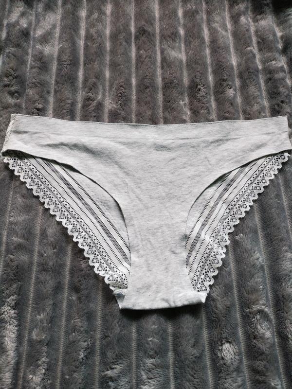 Рада вітати Вас на своїй сторінці. Продаю як власні речі, так і секонд, сток. Тому можливий специфічний запах обробки, який зникає після прання. Безшовні трусики з мереживом від бренду F&F. Стан ідеальний. Якісна, приємна до тіла тканина. По бірці розмір М. Дивіться уважно заміри. На тілі виглядають неймовірно ефектно і сексуально.