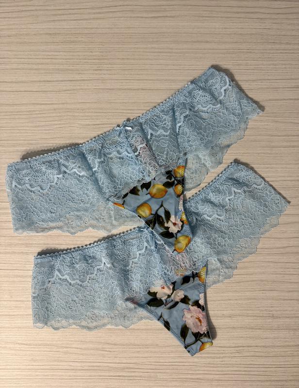 Трусики Victoria’s Secret, оригинал. Lace Hipster Thong Panty Размер S (на объём бедер 90-96см). Цвет - голубой.