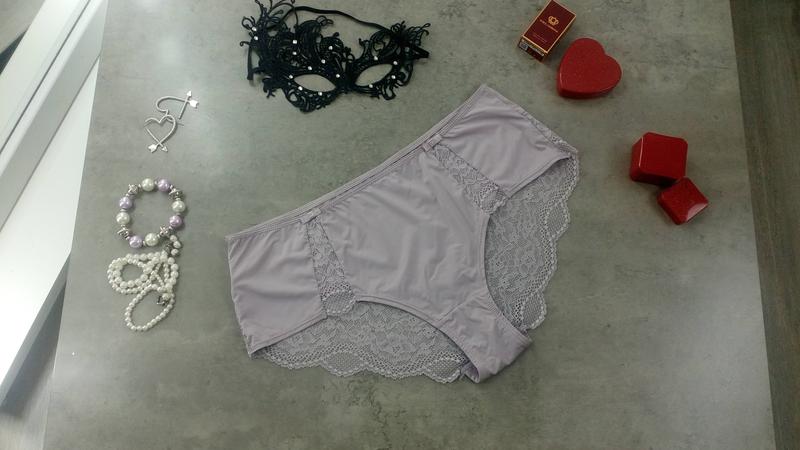 Сіро-бузкові трусики з мереживом The hipster. Розмір M. Висота 26 см, НОС 45 см.