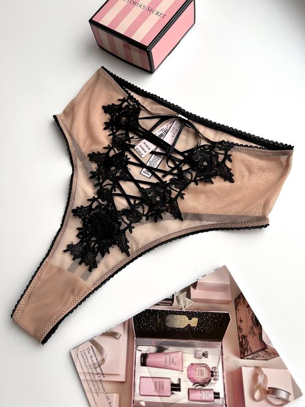 Мережевні трусики стрінги з завищеною талією та вишивкою victoria’s secret