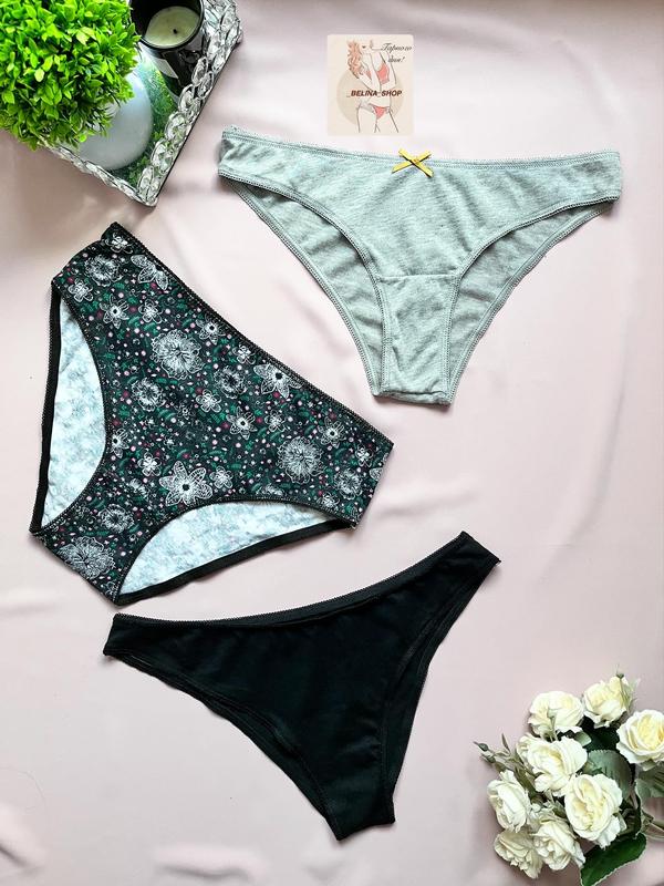 ✨розмір XS 6/8 uk, 34/36 eur✨заміри 👇 Бавовняні трусики від Primark Чорні в розмірі 2XS‼️ Сірі не рівномірно пришита резинка‼️ Чорні та в квіти 100% бавовна Сірі 85% поліестр, 15% бавовна 📌Заміри: напів об’єм Сірі та чорні - Ширина по резинці 31см, тягнеться до 50-52см, висота 18,5-19см В квіти - ширина по резинці 28см, тягнеться до 41см, висота 23,5см 💳 3шт - 110грн