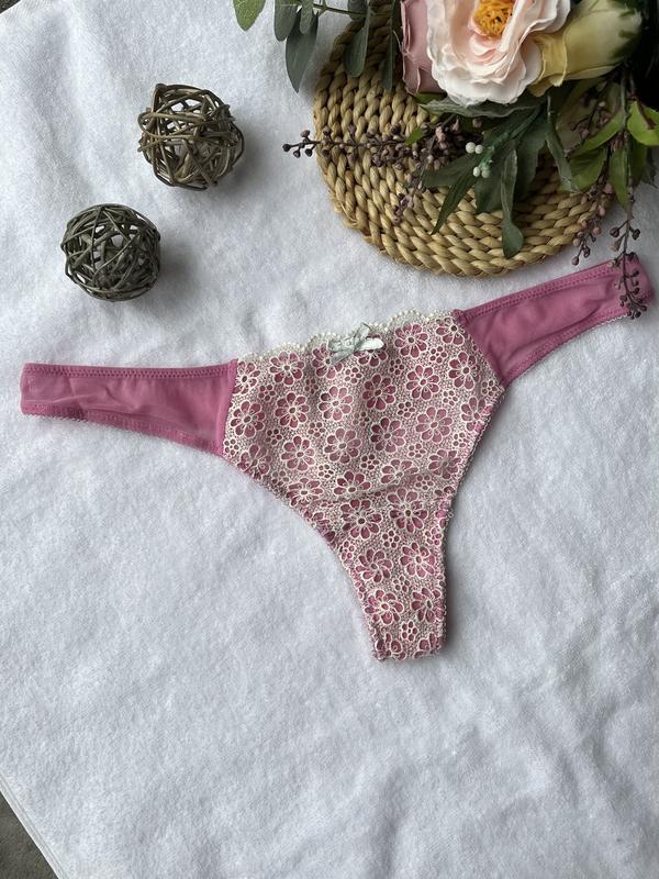 Н&М р. М Стрінги рожевого кольору з білим мережевом Ширина 34 см Висота 17