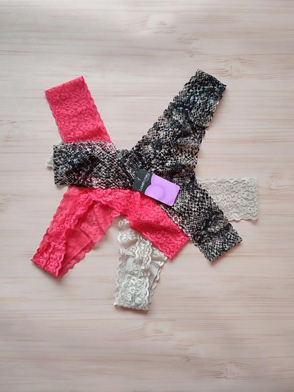 ▪️Продам сет мереживних трусиків Love Honey (3штуки)🍯♥️ Ідуть формою галочки. Розмір вказаний на етикетці -M/L 📏 Напівобхват талії в спокійному стані -26см Висота-25см 🏷️Ціна-400грн Відправляю Укр та Новою поштою.З безпечною оплатою на Шафі також працюю.