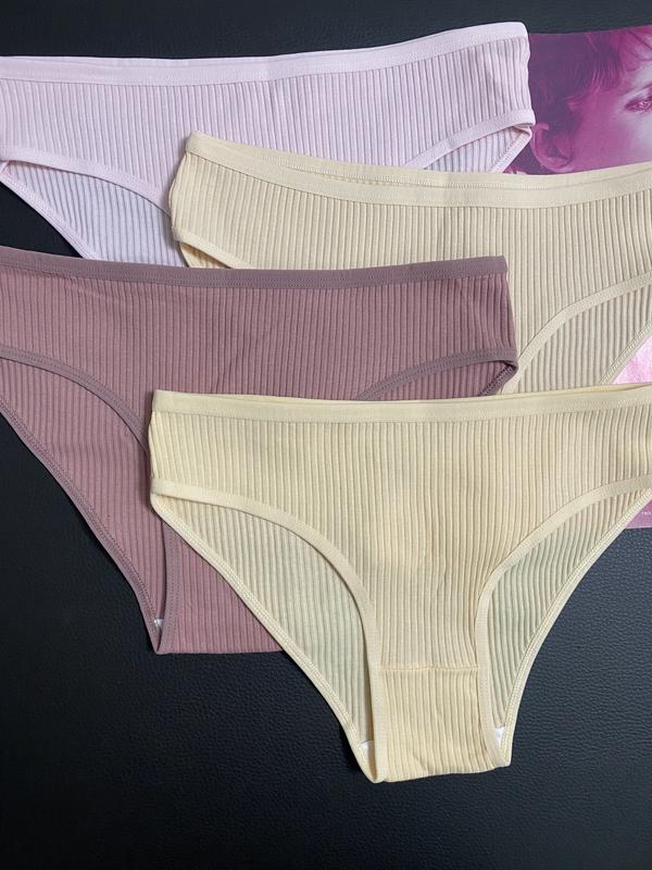 Трусики в рубчик 4шт Бежеві, лимонні, рожеві, пильна троянда. Бавовна.