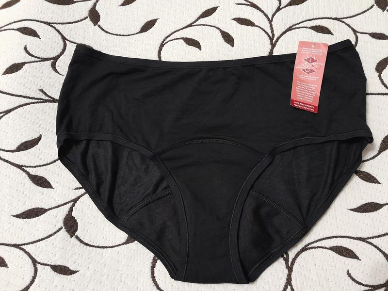 Труси менструальні жіночі Confidence, розмір 54, фірми M&S. Повітропроникні, добре поглинають вологу. Склад: 33% бавовна, 33% модал, 23% поліамід, 11% еластан. Заміри: висота 32 см, напівобхват гумки 40 см, стегон 45 см, не розтягуючи.