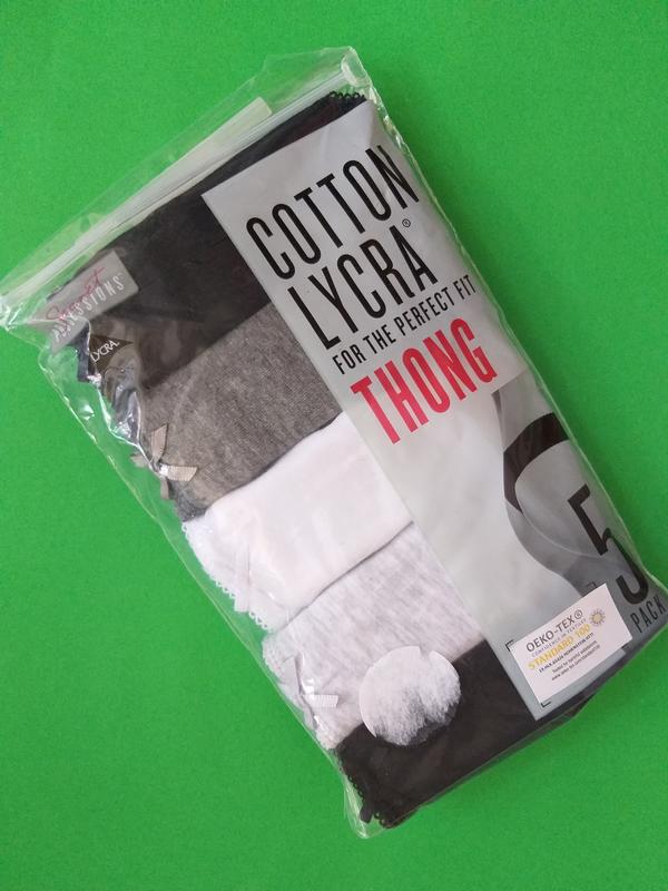 Цена указана за 1 трусики. Минимальный заказ для отправки почтой 150 грн. Размер: 12-14UK(М). Замеры по запросу. Женские трусики стринги Secret Possessions Primark (Англия). Состав: 3x 95% cotton, 5% lycra; 1x 94% cotton, 1% polyester, 5% lycra; 1x 50% cotton, 45% polyester, 5% lycra Без торга. На нижнее белье возврата и обмена нет. Задавайте вопросы до оформления и оплаты заказа! 100% оплата на карту Приватбанка или наложенный платеж Новой почтой по предоплате. Возможна оплата наличными при самовывозе. Доставка: Новая почта день в день - если заказ оплачен до 12-00. Укрпочта по вторникам и четвергам - если заказ оплачен до 9-00.