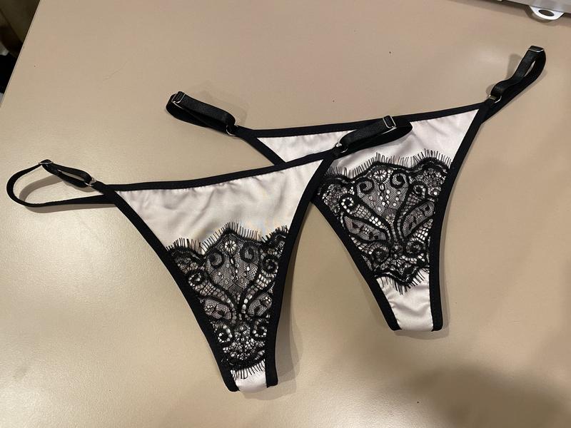 Шовкові стрінги з мереживом і шлейками з регулятором