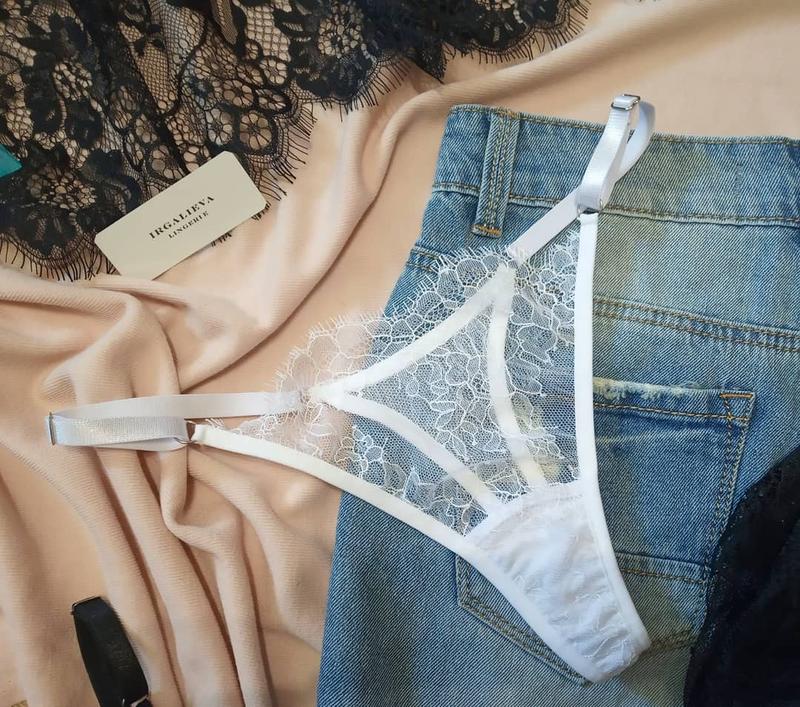 Мереживні білі трусики стрінги з регулюванням