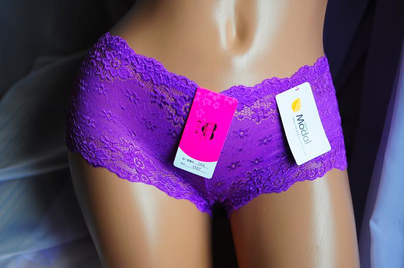 Яскраві помітні бузкові фіолетові жіночі мереживні трусики шортики "хмари" з ніжним квітко...