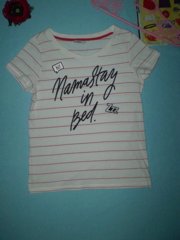 Жіноча футболка Only S 44р. Красномовний основний принт, пластикова нашивка "Hi" згори, тонка червона полоска на білому фоні. 100% бавовна трикотаж Ширина между проймами 46см Довжина 57см Рукав 14/2см Плече 5см Передоплата на карту Приватбанку. Пересилаю Укрпочтой, Новой Поштой. Повернення не передбачено. 17