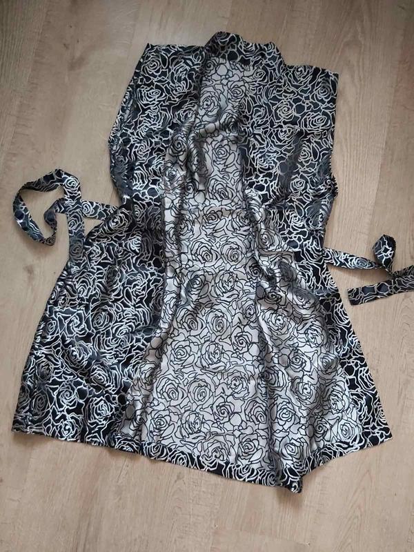 бесподобный халатик с металлическим блеском,без следов ношения,под пояс,карманы,пог 52см,пот 48см,поб 62см,длина 87см