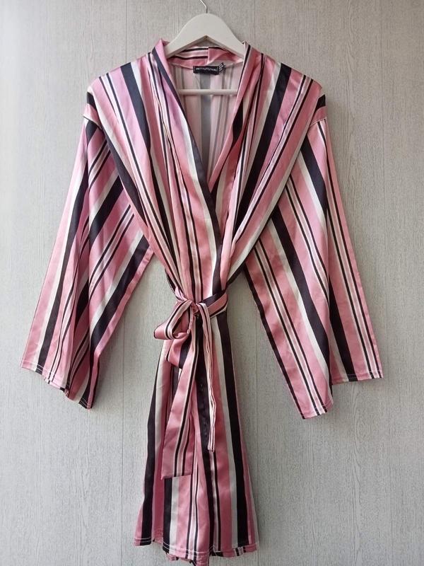 Шикарный халат под шелк на запах,с пояском.Ткань гладкая,приятная как шёлк,слегка тянется.Состояние нового.Размер s,m.
