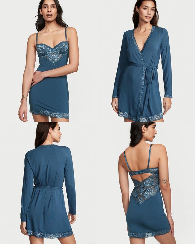 Набор/комплект. рубашка и халат из модала и кружев. victoria’s secret. оригинал 🇺🇸