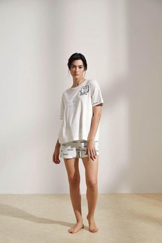 Жіночий домашній костюм футболка вільного крою(короткий рукав)+шорти на резинці Виробник Туреччина Тканина: 94% бавовна+еластан 6%. Розміри у наявності:XS,S,M,L,XL. Наявність потрібного Вам розміру уточнюйте на момент оформлення замовлення.