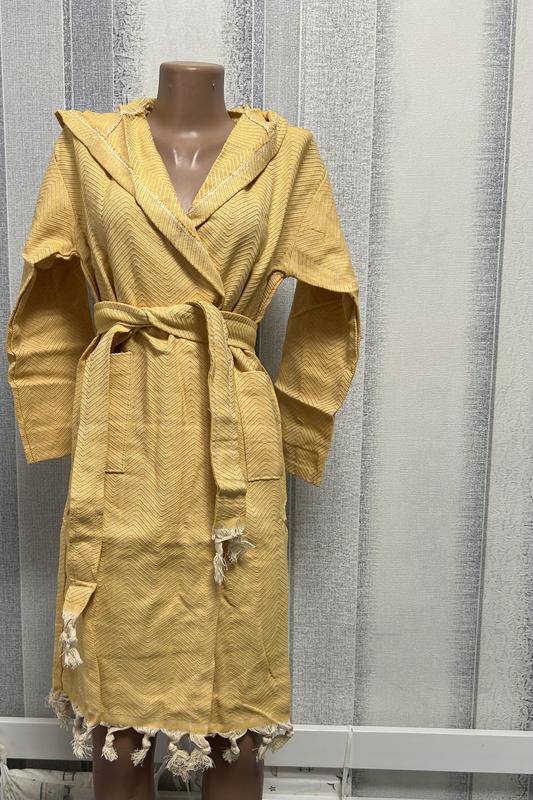 ✨ Стильний і зручний халат із 100% бавовни (Туреччина). ✅ Матеріал: рогожка ялинка ✅ Легкий, дихаючий, приємний до тіла ✅ Має капюшон, пояс та кишені ✅ Низ оздоблений стильними китицями ✅ Ідеальний для дому, сауни, басейну чи пляжу 📏 Розміри: XS та S • XS: ширина плечей 42 см, напівобхват грудей 44 см, довжина виробу 96 см • S: ширина плечей 44 см, напівобхват грудей 46 см, довжина виробу 96 см 🌈 Доступні кольори: чорний 🖤 та гірчичний 💛 📦 Виробник: Туреччина 💎 Якість: відмінна
