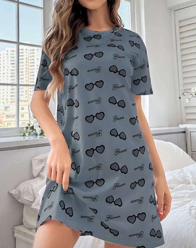 Повсякденна сукня для дому або для сну, короткий рукав, синього кольору, розмір М , вільний покрій