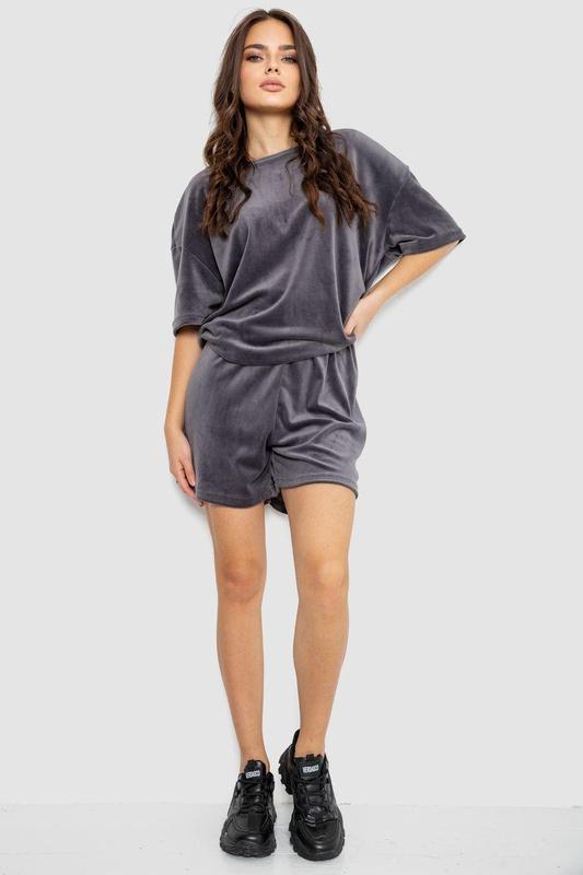 Домашній костюм велюровий, колір сірий, 102r272-3