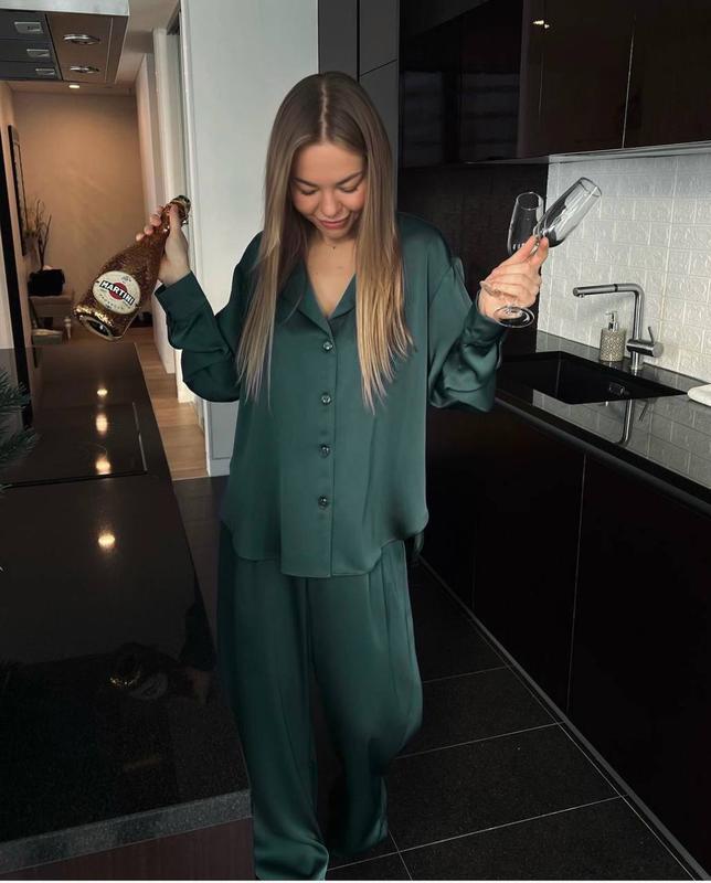 Шовковий піжамний домашній костюм, піжама, брючний костюм сорочка штани шовк