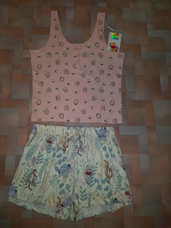 Абсолютно новий збірний комплект, з биркою! Майка в рубчик: Розмір: L UK/IRL 14/16, EUR 42/44 Цвет: персик НОГ — 47 см довжина — 58 см Склад: 95% котон, 5% еластан Шорти: Дуже красивий малюнок Неймовірно м'який матеріал, дуже приємний і еластичний, як олійний, добре тягнеться Розмір: XL UK/IRL 18/20, EUR 46/48 маломерят на L Колір: жовтий гумка — 46 см довжина — 32 см Склад: 94% поліестер, 6% еластан Додаткові фото та заміри за запитом. Пишіть,ментуйте на будь-які питання! БЕЗ ТОРГА!! ВОЗВРАТА НЕТ! Можлива доставка Укрпошта (відправляння двічі на тиждень) і Новою поштою до інших регіонів завдяки покупцям.