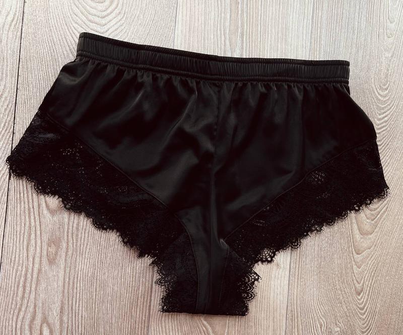 Шорти жіночі шовкові чорні з мереживом PRIMARK🛍️❤️🔥 Розмір - UK 8-10/ EUR 36-38/ USA 4-6/ S-M / 44-46. Склад : 95% поліестер, 5% еластан. Виробник Китай. Шорти короткі шовкові з широким мереживом. Середньої висоти резинка поясу. Додаткові заміри: повна довжина 31 см, напівобхват поясу 32 см (повний обхват 64 см) і тягнеться до 90 см, напівобхват стегон 47 см (повний обхват 94 см) і тягнеться до 100 см, напівобхват виходу ноги 36 см (повний обхват 72 см), посадка по лінії переду 28 см і ззаду 34 см.