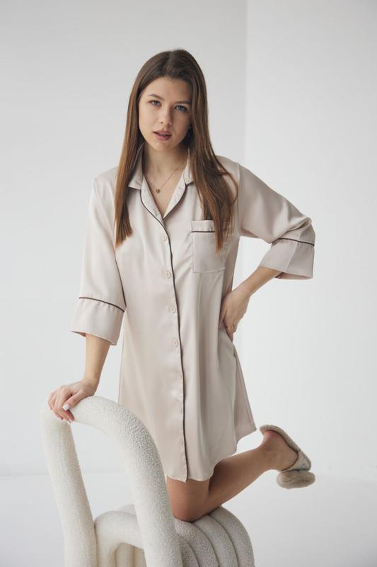 Халат сорочка на ґудзиках з кантом🫶 ✔️Колір: мокко ✔️Тканина: шовк сатин ✔️Розміи: s, m l xl ✔️Код: 218 💵Ціна 950 грн💰 На моделі розмір s
