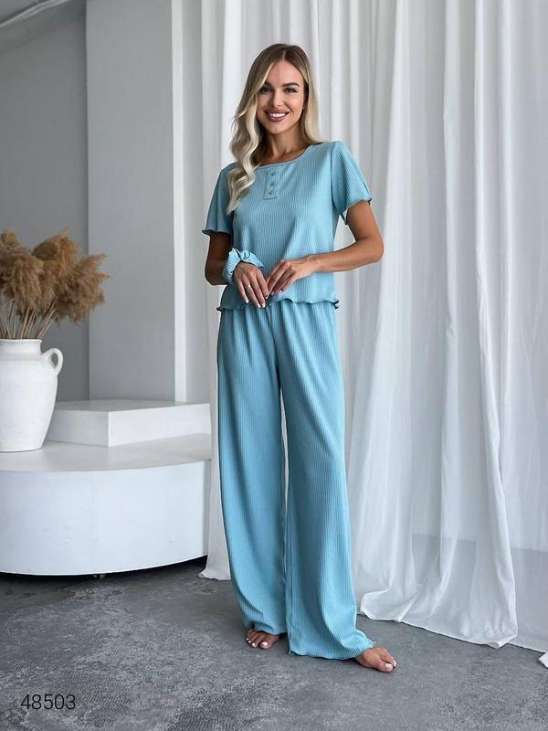 ❗️❗️❗️Перед оформленням замовлення уточнюйте, будь ласка, наявність вашого розміру. Термін відправки від 2 до 7 днів Новою або Укрпоштою. Безпечна оплата✅ Вдалих покупок❤️ Костюм-трійка жіночий. Топ, штани та резинка для волосся. Штани на резинці. Тканина: трикотаж рубчик. Кольори: молочний, бежевий, рожевий, блакитний, коричневий, сірий, синій, ментоловий, малиновий Розміри: 42-44, 46-48, 50-52 Заміри: 42-44:Топ: ОГ: 94 см, довжина: 52 см.Штани: ОТ: 68-90 см, ОБ: 110 см, довжина - 103 см, крок - 77 см. 46-48:Топ: ОГ: 100 см, довжина: 55 см.Штани: ОТ: 72-94 см, ОБ: 116 см, довжина: 104 см, крок: 78 см. 50-52:Топ: ОГ: 106 см довжина: 57 см.Штани: ОТ: 76-98 см, ОБ: 122 см, довжина: 106 см, крок: 80 см.