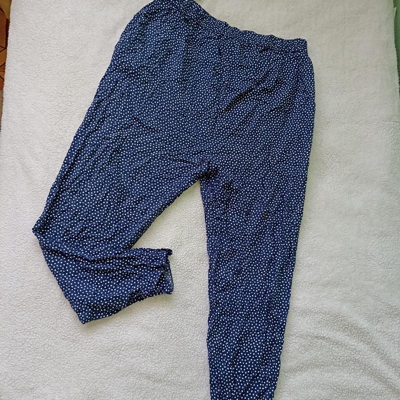 Жіночі легенькі штани для дому з віскози. Максимально комфортні. Розмір 12: ПОТ 43-58, ПОБ 60, довжина 103, крок 71, посадка 42, ширина штаніни в низу 17. Внизу штаніни є розрізи по 9 см
