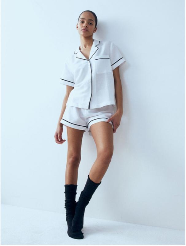 🤍 Білосніжна лляна піжама / костюм для дому від H&M Легка, дихаюча й нереально комфортна. Шорти на кулісці — моя любов, бо їх можна регулювати під себе, і завжди зручно 🙌 Склад: 55% льон, 45% віскоза — виглядає стильно й дуже приємна до тіла. Розмір XXL, добре підійде і на XL. 📌 Стан — нова, без паперової бірки. ✨ Ідеальний варіант і для сну, і для домашнього затишку. Плечі 54 см Рукав від горловини 40 см Під пахвами 70 см Довжина 70 см Шорти Талія 55 см Стегна 68 см Довжина 35 см Посадка 31/44 см Внутрішній шов 6,5 см
