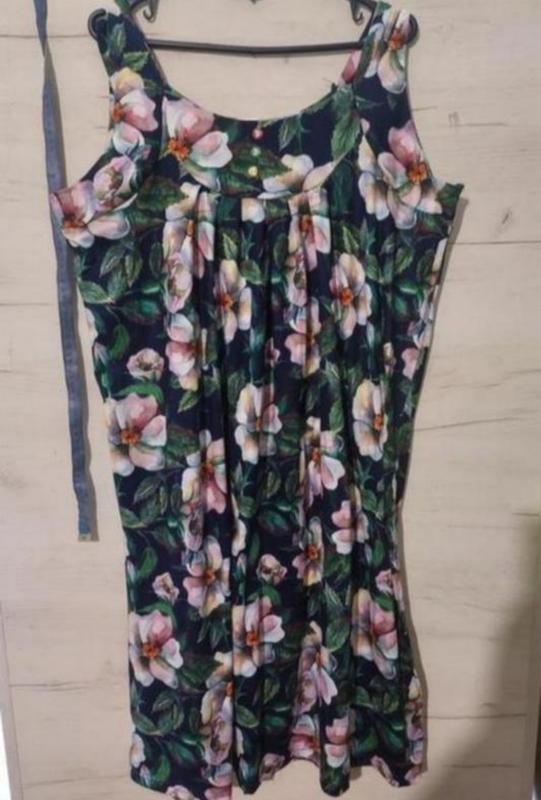 💚річ нова,без бірки,в неї її і не було 💛підписуйтесь будь ласка на мою сторінку💙 💚Дуже повномірний сарафан 💚заявлен 46/48,але і 50 піде 💚заміри зроблю по запиту 💚в народі на таку якість кажуть "бамбук" 💚дуже зручна річ,не жарка,вдягла і забула 💚в пранні і носінні супер 💚до тіла приємна тканина,не жарка Під рукавами півобхват 53 см.Але на груддях ще є складочки,це плюс для грудей,щоб було вільненько Ширина бедра півобхват 74 см в розправленому вигляді Довжина від плечика брительки до низу 102 см Довжмна від центра,без брительок,89 см🩷