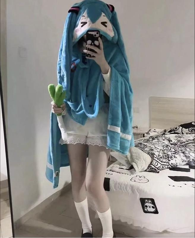 Нікому нічого просто так не відправляю : умови є на сторінці. Безпечна угода -оплата шафі , безпечна угода -повна оплата або передоплата 150 грн на карту продавця ; або повна оплата чи передоплата 150 на карту продавця ! Не бронюйте аби було !!!! В наявності! Гарної якості! Плед з капюшоном Hatsune Miku Розмір: 185*95см Матеріал: корал фліс