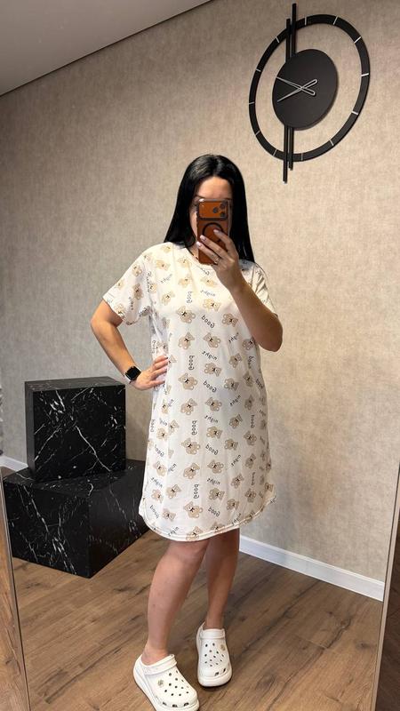 Новинка🔥 📸Фото реал Суперкомфортна домашня сукня з милим принтом – створена для відпочинку та приємних моментів кожного дня 💕 Ідеальний 🎁 Модель: 0057/25 Розміри: 42–46; 48–52 Тканина: бамбук трикотаж – надзвичайно м’який, дихаючий та приємний до тіла матеріал Колір: молочний 🏷️Ціна: 650 грн. Вільний крій, підходить на будь-яку фігуру, не сковує рухів та дарує максимальний комфорт. Стильний варіант для дому, сну або ранкової кави ☕️