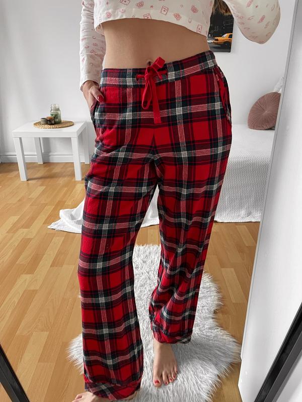 📎 новорічні штани для дому MS ❤️🎄✨ клітинка, регулюються поясом і резинкою, бавовна __ розмір: EU 34 / XS Довжина 97 см Висота посадки 27 см Пот 34 см Поб 48 см __ стан нового! __ 350 грн