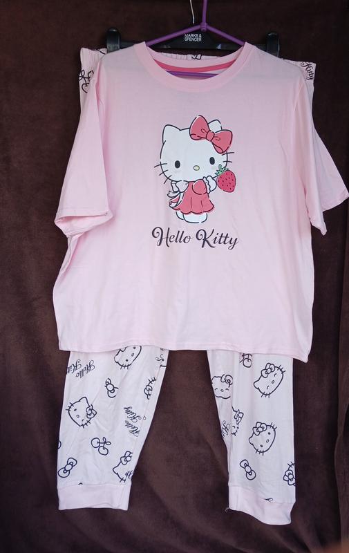 Новый, без бумажной этикетки, качество классное, котон Футболка Полуобхват груди 65 см Длина 64 см Штаны Полуобхват талии, резинка 50-79 см Полуобхват бёдер 71 см Длина 106 см