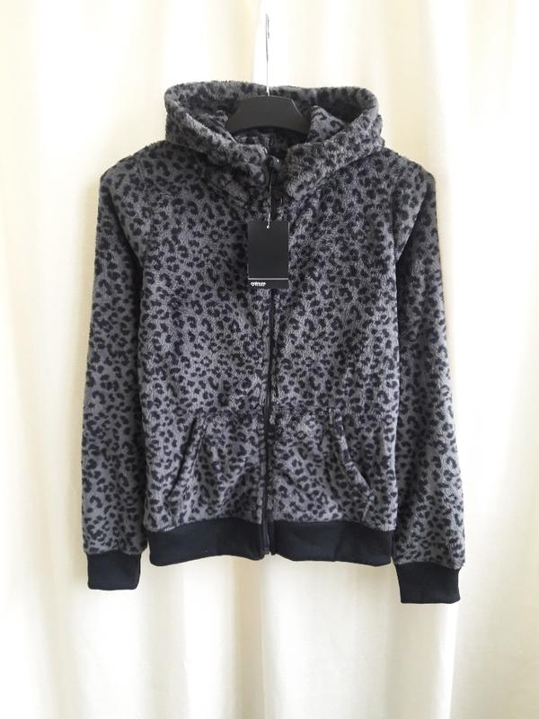 Мила,тепленька кофта з капюшоном і кишенями.На капюшоні вушка Плечі 36см Рукав 65см Груди 45см Довжина 61см