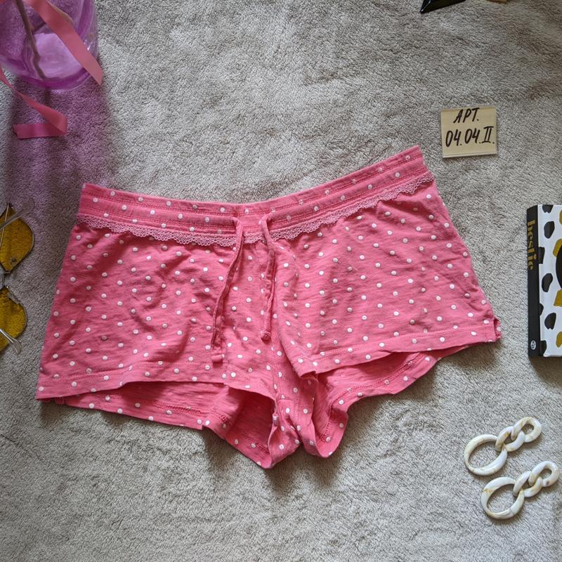 Відправка речей від 85 грн 🎀🎀🎀 домашні шортики для сну коралові в горошок h&m розмір XS напівобхват талії 34 - 43 побіди 40 до 54 довжина по боковому шву 21 см по краях разрезики у складі бавовна