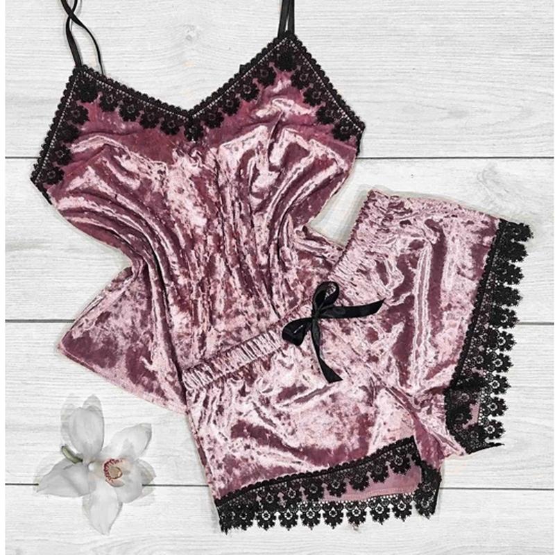 Размер: 42-44 (S-M). Цвет: пинк. Пижама для дома из мраморного велюра - майка на нерегулируемых бретелях, и женские шорты. Выполнен из качественного метериала, украшен роскошным кружевом.