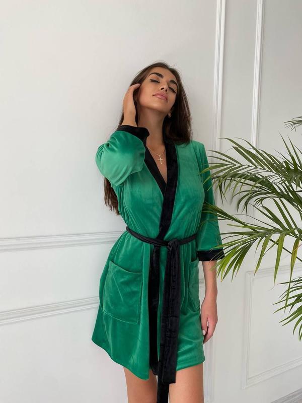 Новинка 💙 Халат Модель 1/083 Розміри: 42-44; 46-48 Тканина : велюр на трикотажній основі , м'яка м'який та приємний до тіла Якість 👌😍 Реал фото