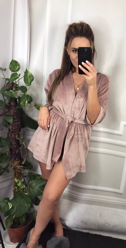 Халати з поясом для фіксації Халат фіксується на зав’язках зсередини та має бретельки для зовнішнього фіксування поясом ☝️ Халат має широкий рукав 3/4, який робить дану модель оригінальною та стильною 😻 ✔️Колір: пудра рожева ✔️Тканина : велюр плюш на котоновій основі ✔️Розміри: XS, М ✔️Код: 007/21 На моделі розмір ХС